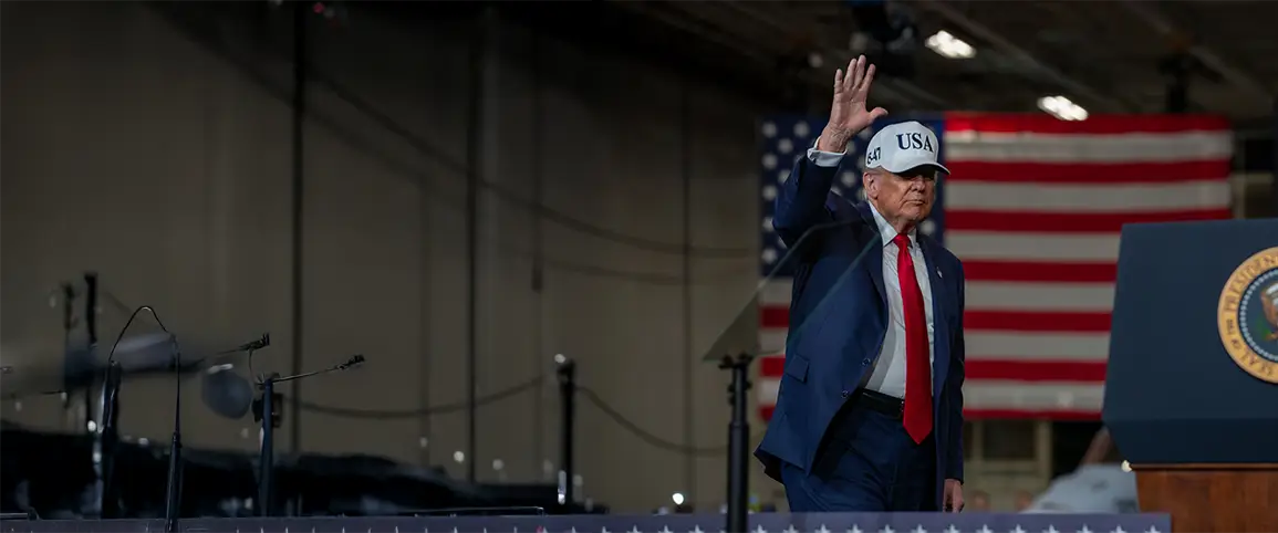 President Trump waving to Sailors aboard a US aircraft carrier. Image: Jack Barnell, US Department of Defense
